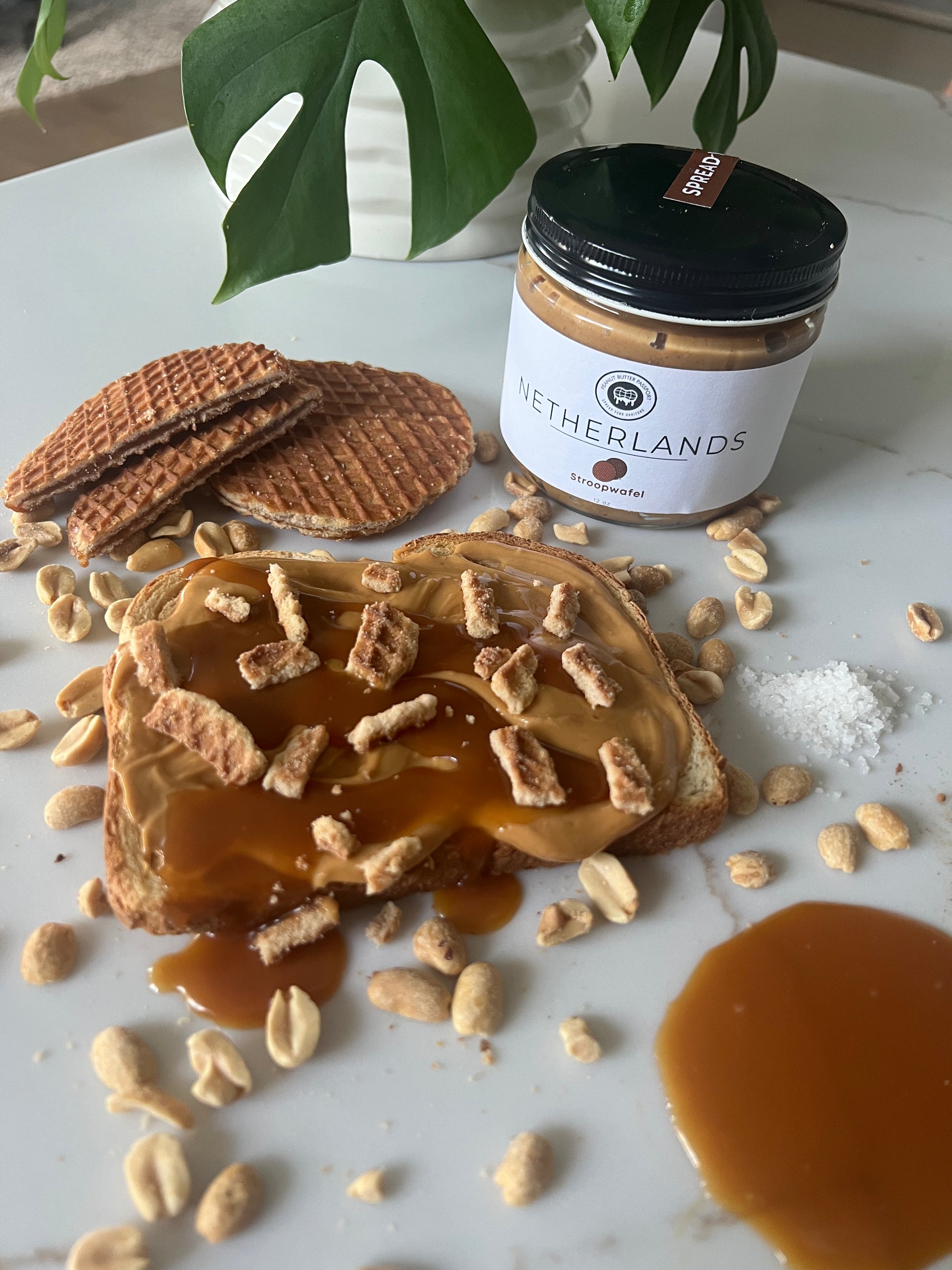 As a homage to the nation that inspired the Peanut Butter Passport concept, that enchanting store, and to selfishly satisfy my Stroopwafel craving, we thought there would be no better flavor to succeed our beloved US-Honey Roasted than Netherlands – Stroopwafel.
